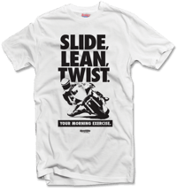 Get up early for that anticipated track day and always remember to warm up before you exercise! Slide, Lean, Twist... Your morning exercise!